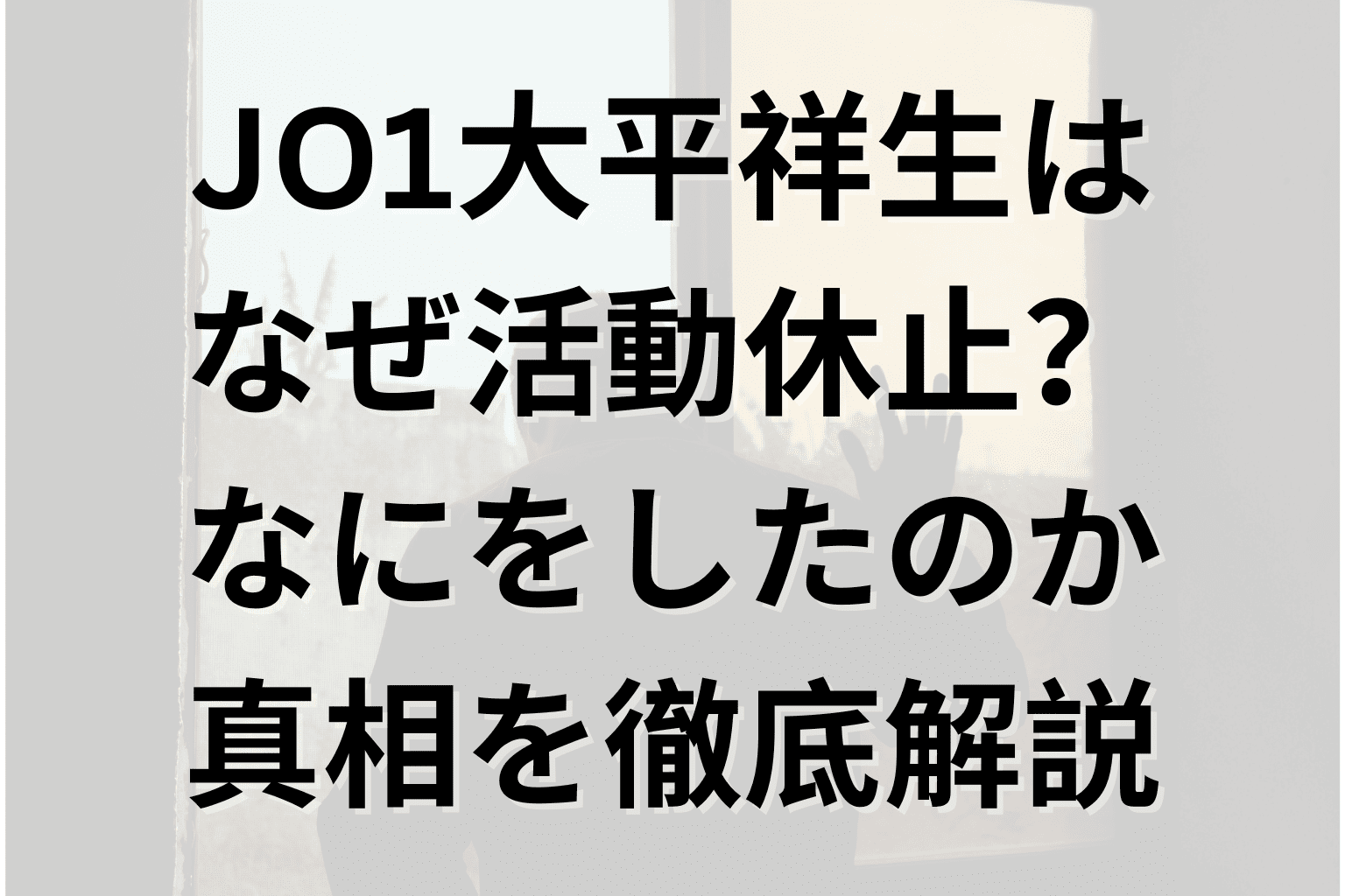 突然の発表で「JO1大平祥生は活動休止、なにをしたのか?」という疑問がファンの間で大きく広がっています。事務所が伝えたのは「規定に反する事案」という一文だけで、詳細は明かされていません。そのためSNSや報道では様々な憶測が飛び交い、不安が増している状況です。本記事では、公式リリースで判明している事実や大手メディアの一致点を整理しつつ、「なにした?」と検索される背景や報道との関係をわかりやすく解説します。また、大平祥生のプロフィールや経歴、JO1の今後の活動への影響、そして復帰の見通しまでを網羅しました。読んでいただくことで、確定情報と噂を切り分け、冷静に状況を理解する手がかりを得られます。