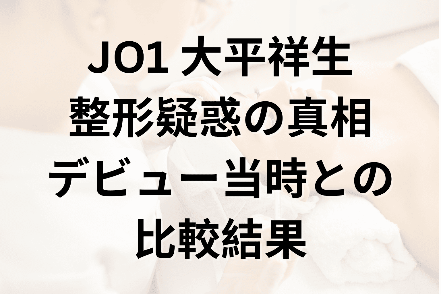 JO1の人気メンバー・大平祥生さんには「整形しているのでは?」という声がネット上で広がっています。デビュー当時と現在の写真を見比べて「目元や鼻が変わった」と話題になる一方で、本人や事務所から整形に関する発言は一切なく、真相を知りたいファンの関心が高まっています。本記事では、整形を公表した事実がない点を前提に、なぜ疑惑が出たのかを整理し、昔と今の公式写真を比較しながら専門的な観点で解説します。さらにファンの反応やアイドルに整形疑惑がつきまとう背景、時系列での活動と外見の変化も紹介します。この記事を読めば、大平祥生さんの整形疑惑の出所から現時点でわかっている事実までを一度に理解できます。