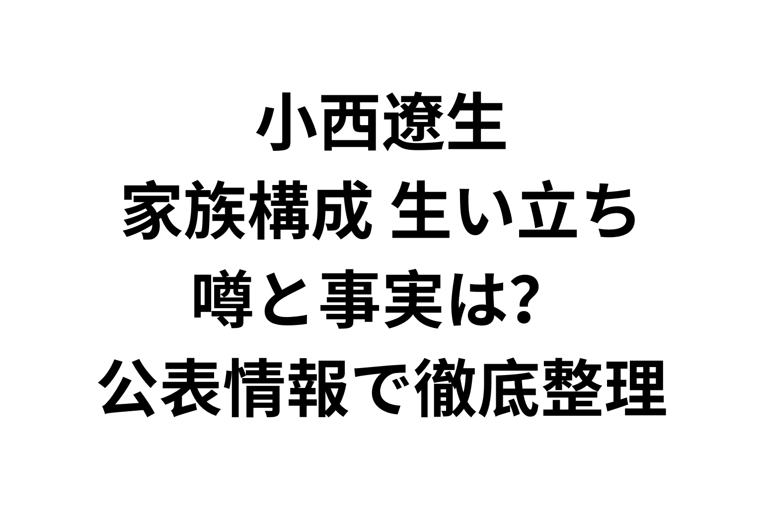 小西遼生 家族構成 生い立ち|噂と事実は?公表情報で徹底整理