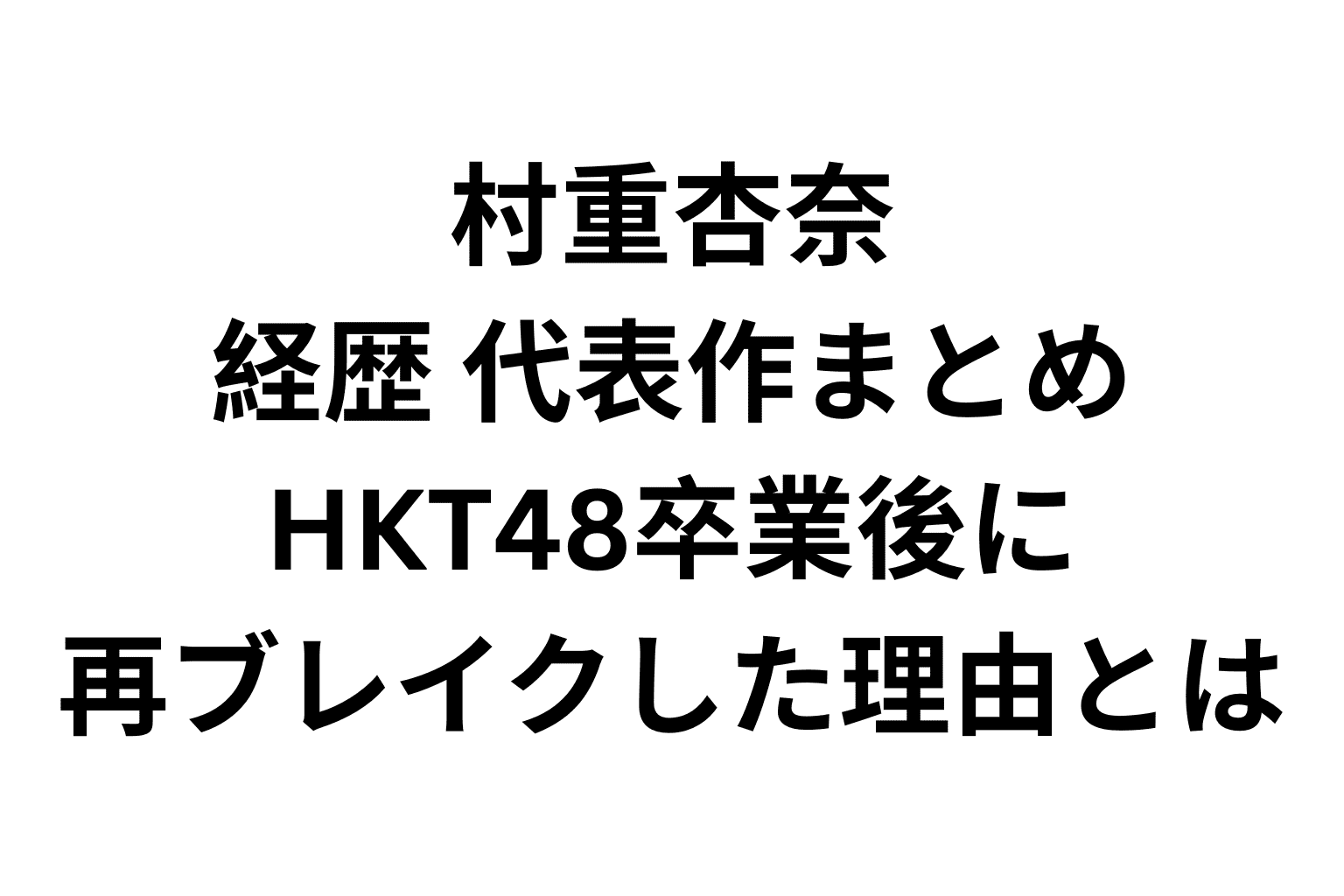 この記事では、村重杏奈さんの経歴や代表作を整理しながら、HKT48時代の活動から現在の活躍までをわかりやすく紹介していきます。