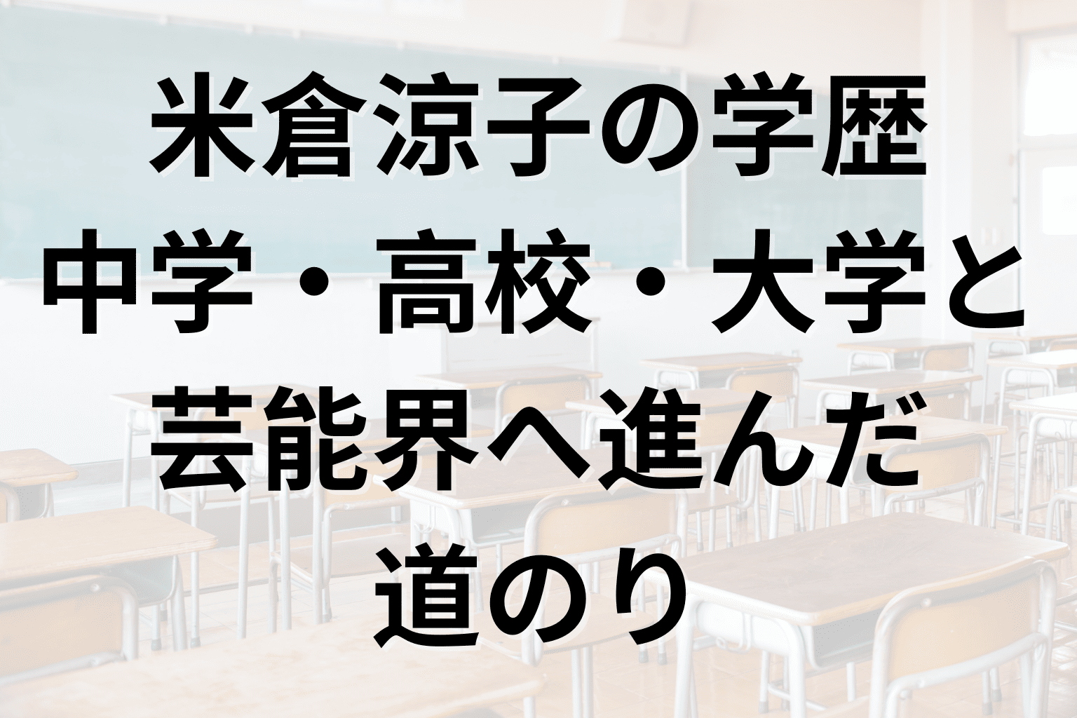 米倉涼子さんの学歴はシンプルですが、芸能界で早くから成功する土台となっています。出身中学は横浜市立南希望が丘中学校で、その後は神奈川県立旭高等学校に進学しました。大学には進学しておらず、高校卒業後に芸能活動へ専念しています。